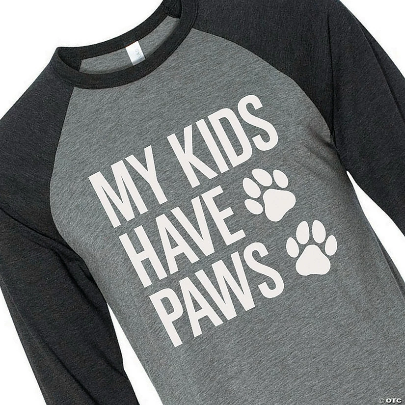 Graphic t-shirts like this are paw-some! A perfect gift for pet owners, this comfy baseball t-shirt features the witty saying โMy Kids Have Pawsโ. Whether youโre shopping for yourself or your favorite dog mom, a three-quarter sleeve t-shirt like this is fun to wear when taking the pup for a walk, running errands or hitting the sack. This could even make for a great fundraising opportunity for local shelters. ยฉ OTCโข Brand: Bella + Canvas.โข 3/4 Sleeve.โข Unisex sizing with side seams.โข Contrast raglan sleeves and neck trim. โข 52% combed and ring-spun cotton, 48% poly, 40 single 3.6 oz.โข Need more? With our tees, we’ve got your back (and front)! To order in bulk for any size group, just call 1-877-513-0384. Or, give us a ring if youโd like to easily customize any of our pre-printed shirts with our free design service.