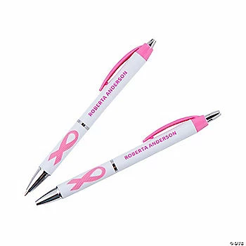 Help raise awareness for breast cancer with these eye-catching pens. Each batch can be customized with the name of a loved one who is either currently battling the disease or is a survivor. These are a thoughtful item to include in a handout bag for an awareness event or fundraiser. Personalize with 1 line of text. Plastic. Black ink. (4 dozen per unit) 5 1/2″ ยฉ OTC