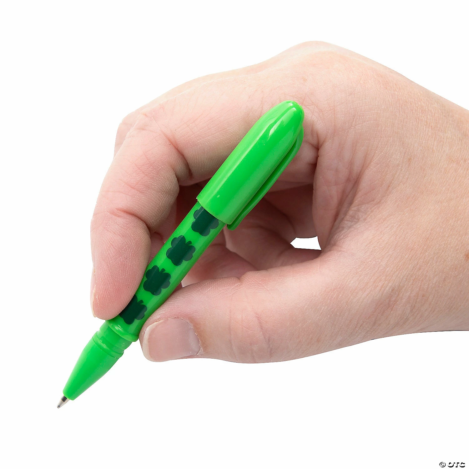 These pens are lucky! Spread some St. Patrick’s Day cheer with these cute pens featuring shamrock shapes and a small size that makes them perfect as handouts or prizes. Each St. Patrick’s Day-worthy pen comes with a lid and a green design that makes them a good choice as a goody bag filler or as St. Patrick’s Day giveaways. Plastic. (2 dozen per unit) 3 3/4″ Black ink. © OTC