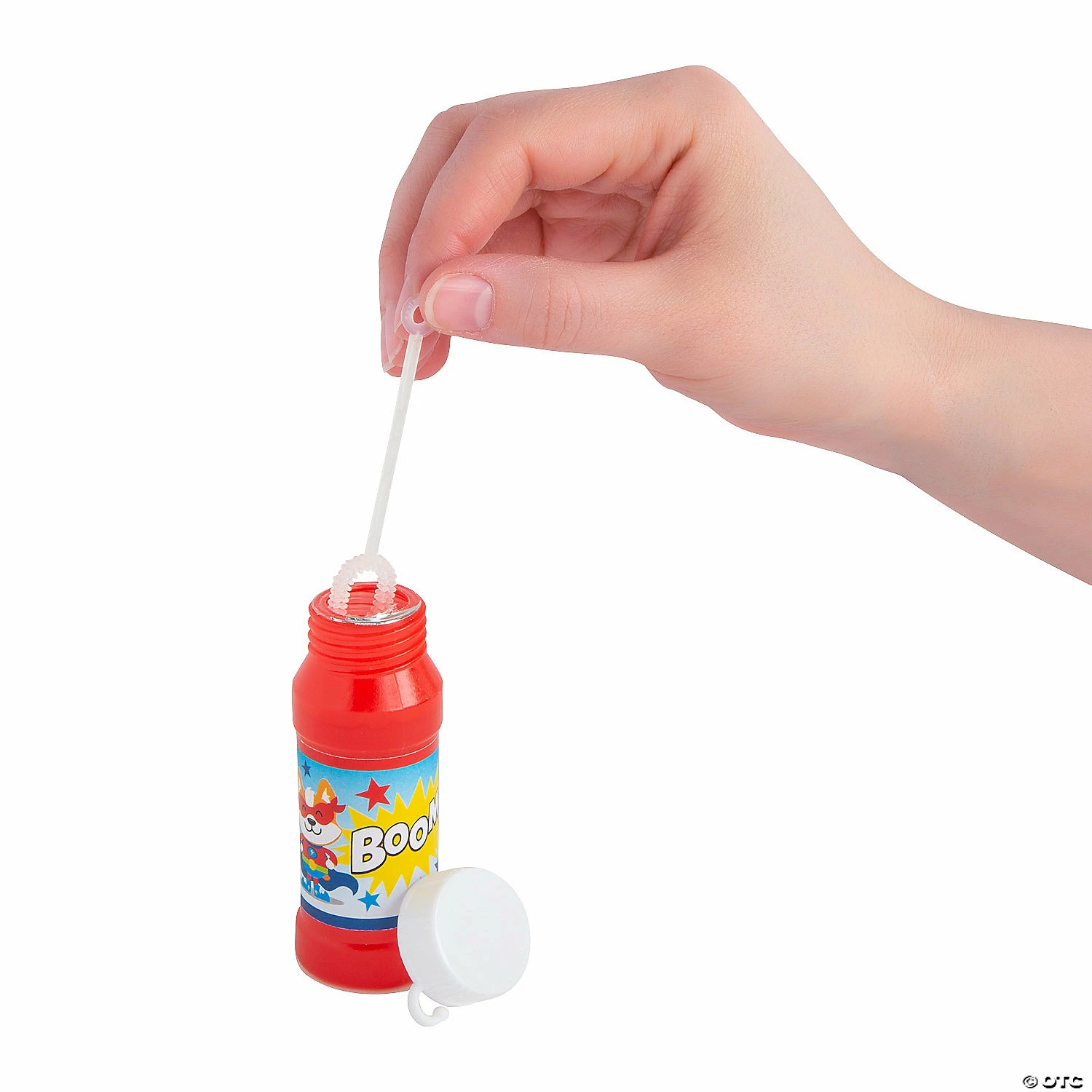Boom! Pow! And, of course, POP! These bubble bottles have images of adorable animal superheroes on the label, making them perfect as party favors at a superhero themed birthday party or as kids’ giveaways at a community event. With plenty of bubble solution in each bottle, these bubble bottles will provide plenty of bubble-blowing fun! Each 1.5-oz. plastic bottle of bubbles comes with an attached wand. 3 1/2″ © OTC